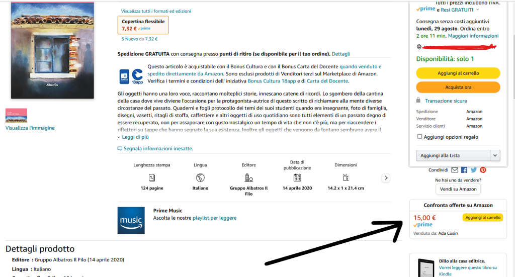 ATTENZIONE, per il libro TEMPO CHE TORNA, i signori di Amazon, pur essendo io l’autrice, mettono per prima l’inserzione con il prezzo più basso: essa non è la mia! Per cui, se volete che il ricavato giunga alle mie tasche assicuratevi di scegliere quello venduto dalla sottoscritta: Ada Cusin!